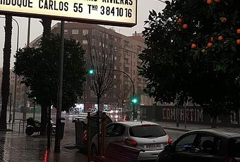 -' El viento amainará este martes aunque se mantiene el aviso por fenómenos costeros en todo el litoral de la Comunitat y continúan las #lluvias, imagen tomada hoy 12:00 h, desde el exterior de nuestra tienda.