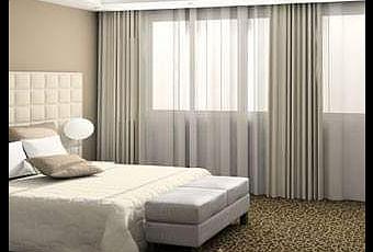 - Para no sobrecargar nuestro dormitorio, es aconsejable usar cortinas de telas y tejidos lisos aunque siempre acompañados de visillos para no perder ni intimidad ni luz natural.
