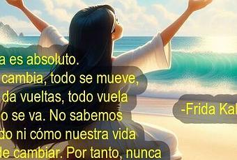“Nada es absoluto. Todo cambia, todo se mueve, todo da vueltas, todo vuela y todo se va. No sabemos cuándo ni cómo nuestra vida puede cambiar. Por tanto, nunca te apegues a tus planes. Sólo déjalo fluir.” -Frida Kahlo