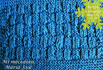 Número de puntos divisible por 6, más orillos1ª y 7ª vuelta: Todos los puntos al derecho.2ª y 8ª vuelta: Todos los puntos al revés.3ª y 5ª vuelta: * 1 punto al derecho, 4 puntos al revés, 1 punto al derecho *4ª y 6ª vuelta: * 1 punto al revés, 4 puntos al derecho, 1 punto al revés *9ª y 11ª vuelta: * 2 puntos al revés, 2 puntos al derecho, 2 puntos al revés *10ª y 12ª vuelta: * 2 puntos al derecho, 2 puntos al revés, 2 puntos al derecho *