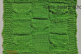 Sin llegar a ser un ocho, cable, o como queramos llamarlo, el cruce de este punto acentúa la textura del punto en damero combinando el punto jersey derecho y el jersey revés.