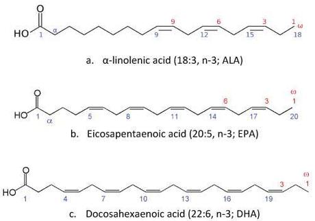 El ALA - que es Ácido Alfa Linolénico es el que se encuentra mayoritariamente en las plantas, mientras el EPA - Ácido Eicosapentaenoico y el DHA - Ácido Docosaexaenoico se encuentran sobre todo en el pescado graso.