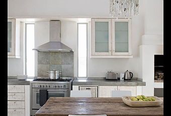Los pisos son de microcemento alisado, los textiles crudos y el mobiliario de rustico actual.