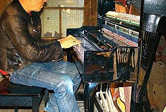 Tom Waits tocando un piano desmontado. Buena parte de sus últimos discos salen de la investigación del sonido en instrumentos convencionales tuneados.