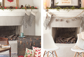 Hoy comparto dos decoraciones navideñas para adornar la chimenea que me parecen una monada. El mismo espacio, pero con diferentes auxiliares y complementos. Una chimenea decorada en rojos, más tradicional; y la otra, en tonos claro con influencia de estilo nórdico.