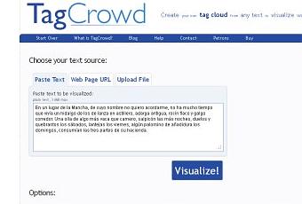 Otra opción es mostrar varias palabras y los estudiantes lo que deben hacer es formar frases o párrafos con sentido. Deben construir material ingenioso. Para esto se puede utilizar una nube de etiquetas con tagcrowd donde se introduce un párrafo de un libro o un texto y genera una nube de etiquetas automáticamente.