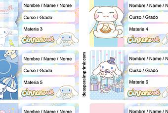 * Etiquetas escolares de CINNAMOROLL editables GRATIS
