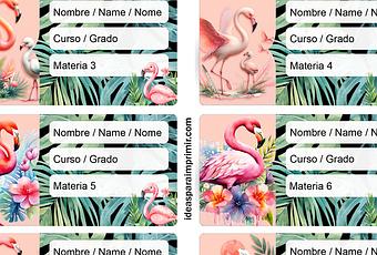 Descargar Etiquetas escolares Flamencos en formato PDF (No Editable). Tamaño de hoja A4.