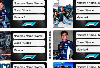 Les presentamos las nuevas etiquetas escolares de FRANCO COLAPINTO editables GRATIS. Plantillas en formato PDF con etiquetas para cuadernos, carpetas, manuales o libros escolares con la temática Franco Colapinto de descarga gratuita, listas para editar e imprimir con el nombre y datos personalizados.