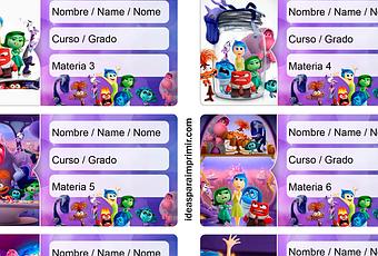 Etiquetas escolares de Intensamente 2 para imprimir (Para completar escribiendo los datos a mano)