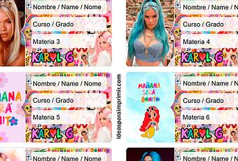 Etiquetas escolares de Karol G para imprimir (y luego escribir los datos a mano)