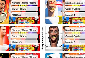 Etiquetas escolares de Skibidi Toilets para imprimir (Para completar escribiendo los datos a mano)