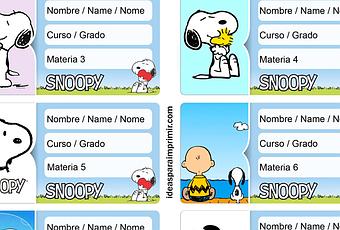* Etiquetas escolares de SNOOPY No editables (Para completar escribiendo a mano)