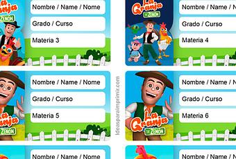 Etiquetas escolares de La Granja de Zenón editables GRATIS