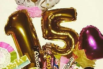 @giftmaracaiboUn tierno osito, corazones, rosetones, chocolates y el numero 15 en globos metalizados