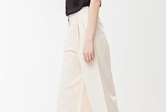 los chalecos largos, los pantalones altos de cintura, los pantalones palazzo, los vestidos blancos, los culottes y una falda de cuero negra que es perfecta (cuesta 150 euros). Queda genial con el pañuelo estampado al cuello que viene tan bien para los peligrosísimos aires acondicionados de estas fechas. Son looks sobrios pero con un punto muy contemporáneo y elegante.