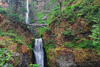 Multnomah Falls es la joya de la corona de las cascadas cerca de Portland. Esta cascada de dos niveles y 620 pies en Columbia River Gorge es de fácil acceso desde Portland, a menos de 30 millas de distancia. Atrae a más de 2,5 millones de visitantes cada año. Esta altura y el tamaño de la multitud hacen de Multnomah Falls la cascada más alta de Oregón y una de las más visitadas del noroeste del Pacífico.