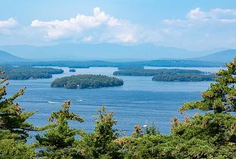 Winnipesaukee, el charcal más vasto de New Hampshire y el símbolo de toda la región central del estado, es un patio de recreo de verano amado por las familias por sus playas, deportes acuáticos y atracciones para niños.