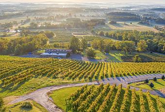 Como si los viñedos no fueran lo suficientemente impresionantes, estas bodegas tienen vistas panorámicas de las montañas Blue Ridge. Tómese un tiempo para explorar Middleburg, una encantadora ciudad de estilo colonial, y combine su vino con una comida de la granja a la mesa.