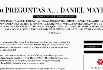 “La imagen al final es como un martillo. Lo puedes utilizar para construir una casa, pero también para destrozarla”. Con esta metáfora el artista madrileño Daniel Mayrit (1985) describe, en la entrevista que presentamos a continuación, el carácter artificial y arbitrario que, en su opinión, toda imagen encierra en la actualidad.
