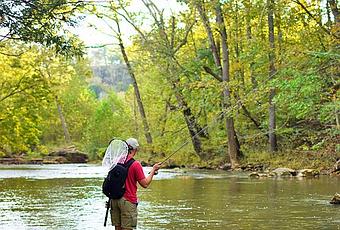 Hay dos secciones de designación universal para la captura de truchas, así como secciones solo de captura y libramiento. Muchas de las secciones de designación universal son fácilmente accesibles por carretera. Durante ciertas épocas del año, las truchas se transportan en tren y se almacenan cerca de Spruce Knob, que es un campo de acción hermosa para los pescadores que desean disfrutar de uno de los lugares más pintorescos del estado durante su alucinación de pesca.