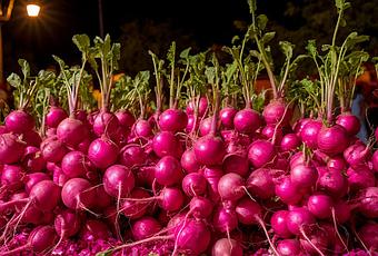 Cada 23 de diciembre, los oaxaqueños tallan rábanos gigantes como si fueran escultores del renacimiento. Las figuras pueden representar desde nacimientos hasta leyendas locales.