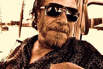 Un inusual Bukowski con gafas oscuras en el interior de su famoso 'volocho'. Estamos celebrando a este autor de culto en el peor momento posible. Las bromas, las ironías, los ladridos, los insultos, las reflexiones contra la condición del ser humano parecen quedar fuera de lugar en la inclasificable nueva normalidad peruana. Las cifras no nos dan tregua para nada. Sin embargo, debido al amor de las redes sociales por el calendario, y al amor de algunos lectores por Charles Bukowski, queremos compartir de todas formas algunas impresiones sobre este autor que tantas risas nos ha regalado. Detalle en absoluto menor cuando un vistazo a la realidad lo último que genera es risa, y lo más difícil es reírse solo.
