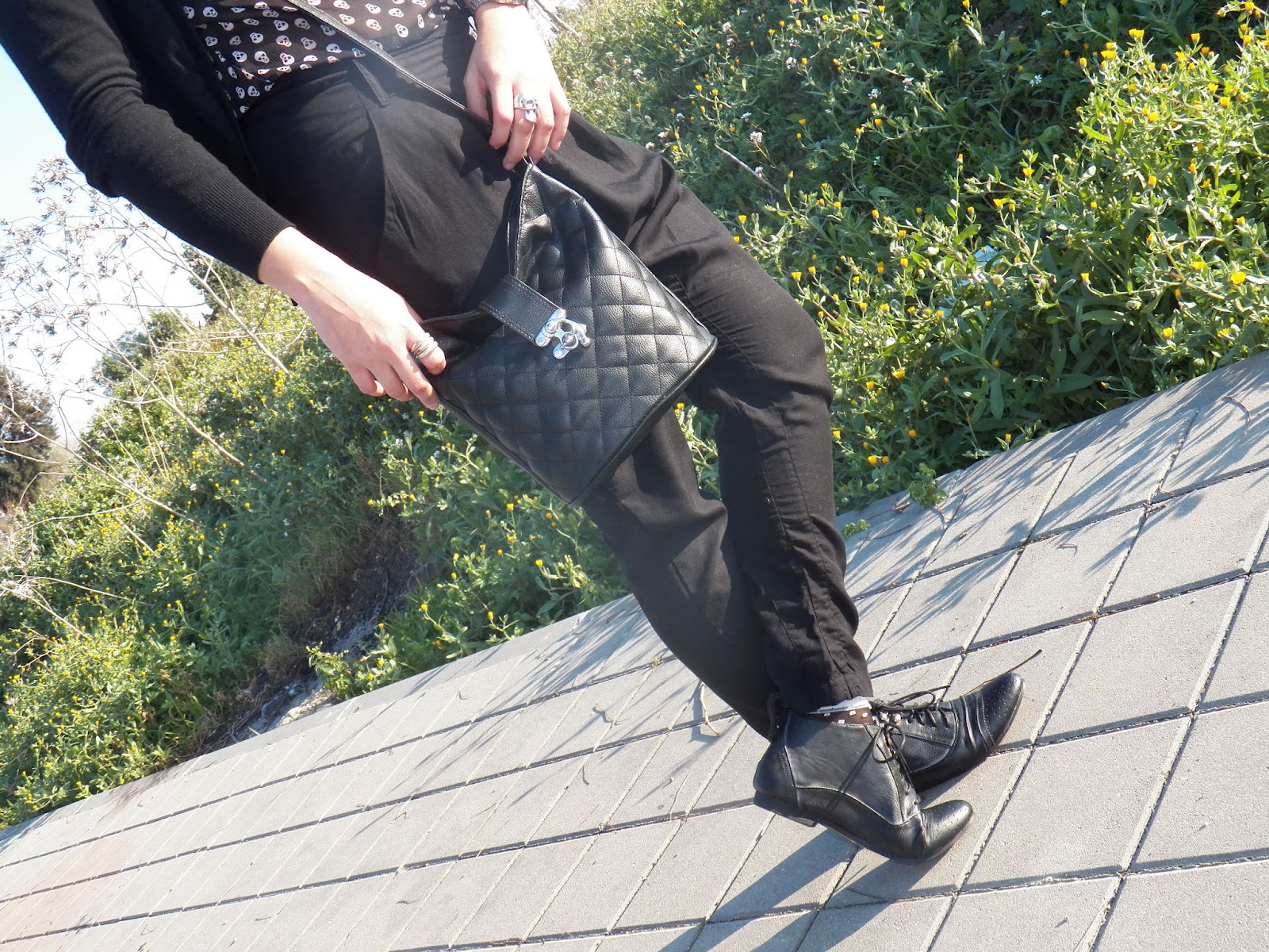 Rebeca - BSK / Camisa - Blanco / Baggy - BSK / Bolso y botines - PRIMARKSi queremos darle algo de color y romper la uniformidad del look total black tan solo tendremos que cambiar los zapatos o bolsos de otros colores.Te apuntas al total black??Besitos Lau.