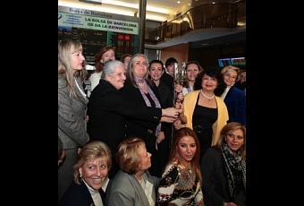 En un acto que representa el empuje de las mujeres por llegar a Consejos de Administración, una Bolsa, esta vez la de Barcelona, estuvo copada por mujeres. Cuando sonaron las 12 en punto, Irene Natividad, Presidenta del Global Summit of Women, tocó la campana con tanta energía que se soltó el badajo. Como bromeara más tarde: "Así se demuestra la fuerza con la que llegan las mujeres a este entorno".El Presidente de la Bolsa de Barcelona, Joan Hortala dio la bienvenida a todas las asistentes, resaltando que la primera mujer que trabajo en la Bolsa en España, lo hizo en Barcelona.También estuvo allí Maite Fandos i Paya, teniente alcalde -de calidad de vida, igualdad y deportes-) del Ajuntament de Barcelona que dio una cálida bienvenida, recordando que cuando era la presidenta del Institut Catala de la Dona, conoció a Irene Natividad.