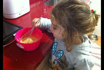 Le encanta cocinar, ponerse a mi lado en la encimera subida en su banqueta de ikea a amasar, pintar, cocinar o lo que haga falta con tal de estar a mi lado, y además el Lunes 15 cumple 4 añazos, así que muchas gracias Carmela!!!te quiero muchísimo.