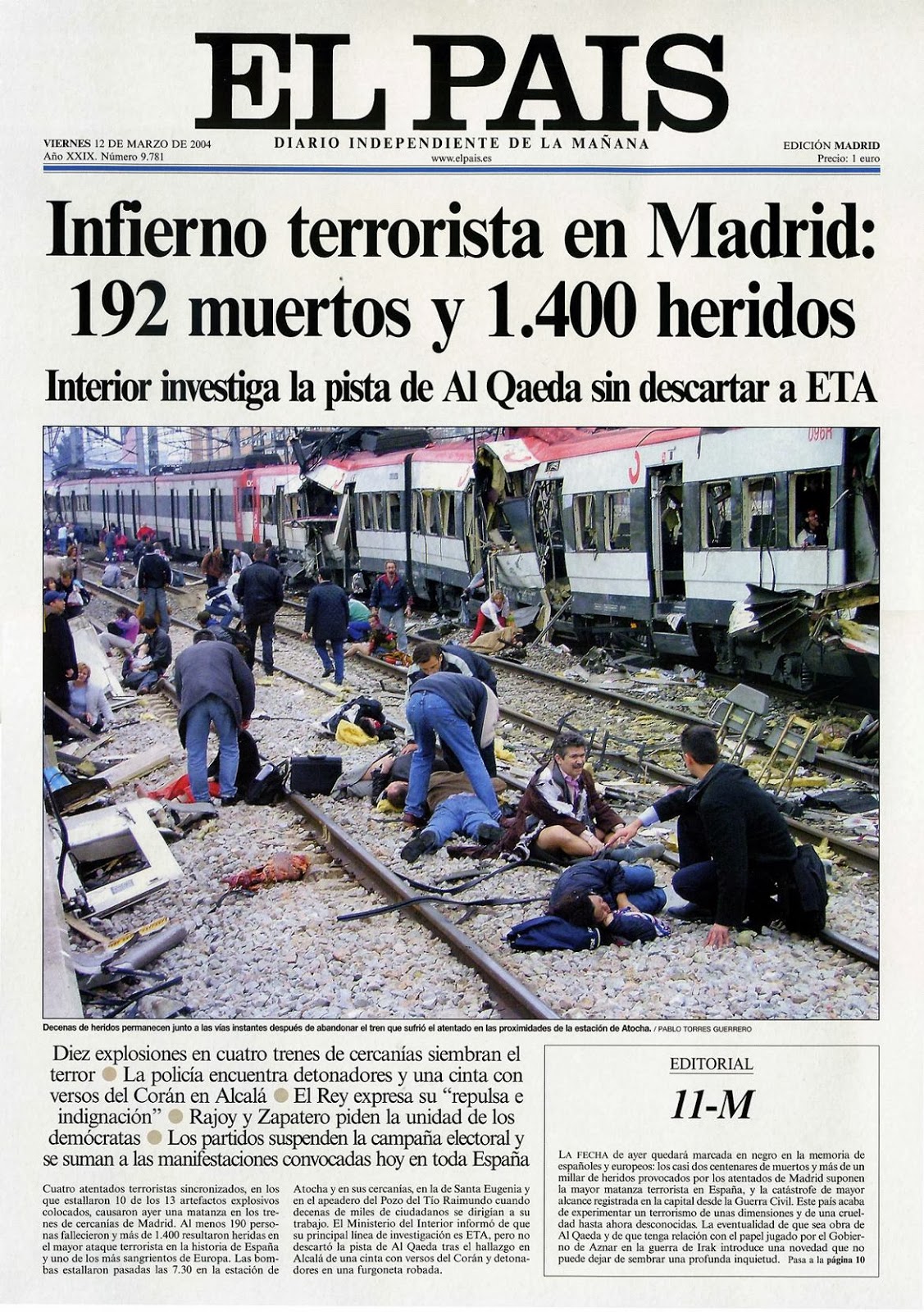 Es cierto que los atentados se produjeron sólo tres días antes de la convocatoria electoral del 14-M, que dio el punto final a la segunda legislatura de Aznar, y el gobierno pasó a manos del PSOE, encarnado en José Luis Rodríguez Zapatero. Es cierto que los atentados influyeron en el resultado de estas elecciones. No recuerdo haber sufrido tantas aglomeraciones y colas en el colegio electoral como ese domingo. Los atentados movilizaron a varios millones de tradicionales abstencionistas, que depositaron un voto que básicamente resultó ser de castigo al PP. Intuyo que por la cuestión de la guerra de Iraq, que siempre tuvo una fuerte oposición popular, y también por la gestión, bastante torticera, de las primeras horas y días tras el atentado.