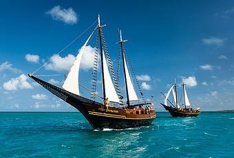 El recorrido se realiza a bordo de una impresionante réplica de un barco pirata con una tripulación amante de la diversión. Puede elegir entre una serie de cruceros, incluidos Morning Sail y Snorkel Crucero.