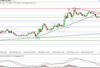 Pronóstico válido durante 24 Horas: Mientras El USDX Spot no supere al Alza la Resistencia existente en el Nivel 77.937, el Par de Divisas EUR/USD puede recuperar la trayectoria Alcista que ha traído en Sesiones anteriores, todo ello en un Horizonte Temporal que va del Intradía analizado al que le sigue:. 13-14/08/2013.