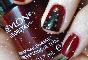 Disculpen la calidad de las fotos, fueron tomadas con escasa iluminación, espero que se aprecie el diseño. Es super sencillo de realizar, solo necesitas una pintura de tu elección que resalte contra el verde del arbolito, escogíVelvet RopedeRevlon Colorstayporque me parece que es un color muy festivo y el contraste funciona bastante bien. Para el cuerpo del arbolito, utilicé un verde escarchado,Rain Forest,(puedes hacer el triángulo con cinta adhesiva si prefieres) pensé que los brillitos harían las veces de luces, aunque si no tienes una pintura en este estilo siempre puedes usar un top coat con brillos sobre una base verde, consideré añadir un brillo escarchado sobre el arbolito una vez finalizado pero me gustó la sencillez del diseño tal cual quedó. Para la corona del arbolito y las bambalinas utilicé una pintura color rosa-dorado con muchos brillos, elFall MooddeRevlon, me ayudé con un palito de madera para hacer las gotitas. Las fotos no incluyen top coat, se lo coloqué después, para que el diseño durara y tuviera mayor brillo.