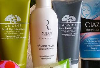 Para empezar uno un poco de mi exfoliante de Olay, éste lo compré en Alemania hace ya un año y esta ya en sus últimas, pero es uno al que le he dado mucho uso últimamente. Sufro con los poros ocluidos, permanentemente, por lo que una exfoliación semanal es vital. Las perlitas que contiene no son pequeñas por lo que es bastante efectivo, además contiene ácido salicílico que ayuda a limpiar los poros desde adentro. Una vez pasado este paso tan esencial, voy a una mascarilla de arcilla, mi opción actual es la Clear Improvements de Origins, bastante efectiva para terminar de extraer todo de los poros. Una vez que se ha endurecido la retiro con agua tibia o un pañito, lo cual hace el proceso mucho más sencillo. Adoro esta mascarilla pero si tienes la piel muy reseca o sensible no se si te la recomendaría, pues es bastante limpiadora y a veces deja la piel un poco tirante.