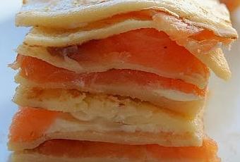 Cucharitas de pasta brisa con salmón, miel y nueces. Receta aquí.