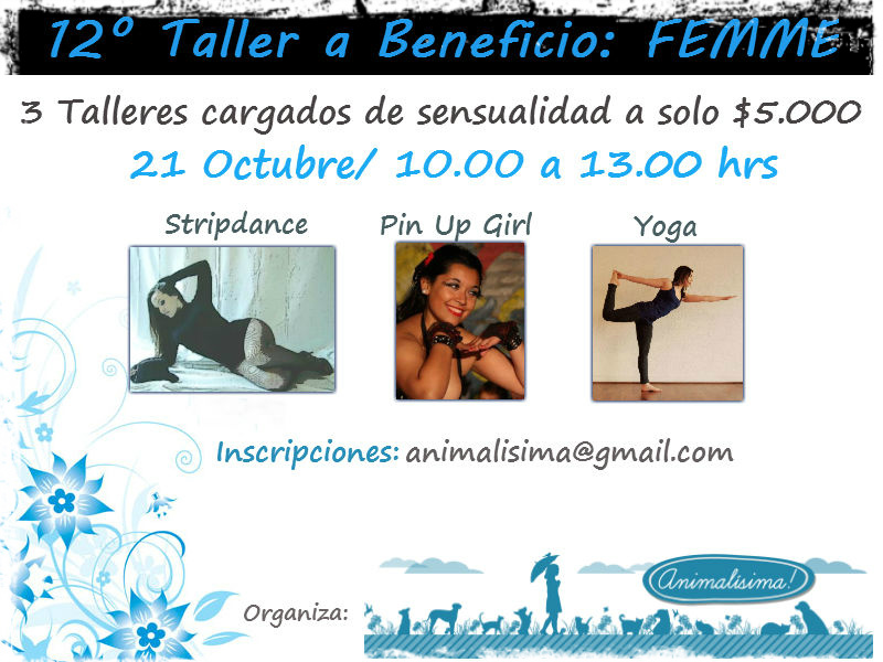 Amigas, ¡les traigo una nueva invitación! ¿Se acuerdan del taller de defensa personal que iba en beneficio de el pitbull Coloso? Bueno, no resultó. Pero las quiero invitar a este que no se pueden perder.Una jornada de actividades solamente para nosotras, repartidas en 1 hora de yoga, 1 hora de danza+actitud pin-up y 1 hora de stripdance; ¡todo por $5.000!Inscripciones al mail [email protected].¡Las esperamos!