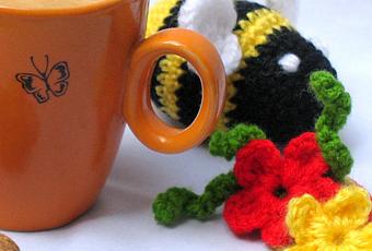 Soy Apasionada de los Amigurumis ... y esta foto representa un desayuno que realice el 03.05.2011 para una amiga muy especial que cumple los años el 3 de Mayo ... la invite a casa para celebrar bien tempranito y en su taza de un rico café le puse esta hermosa Abejita adornadas con Flores, que por cierto fue uno de mis Primeros Amigurumis.