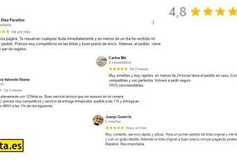 123tinta cuenta con un servicio de atención al cliente personalizado, tanto antes como después de la compra, y entrega en 24-48 horas siempre que haya stock del producto. Así, el 97% de pedidos realizados en la web son entregados al día siguiente.