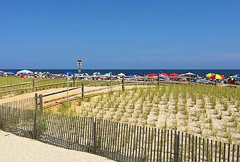 Las cinco millas de amplias playas de arena son gratuitas, lo que puede significar grandes ahorros para las familias. La playa es muy plana y enorme, ya que durante la marea desprecio, puede tomar 10 minutos caminar desde el borde del malecón hasta la cadena de flotación. Como ocurre con la mayoría de las ciudades costeras de Nueva Chaleco, la arena es blanca y suave.