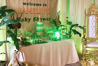 Todo un escenario organizado y preparado para tener toda la atención en la Bienvenida al nuevo bebe y por eso en el centro se coloco las letras 3D con el nombre, sin olvidar el tema de Safari los peluches de animales salvajes sobresalen entre el follaje de la selva @nreventos