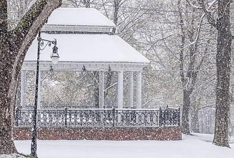Este espacio está sombreado por hermosos árboles maduros y tiene un quiosco de música que ha albergado una serie de conciertos semanales de verano durante más de tres décadas.