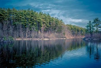 Con más de 2,200 acres, la Reserva de Middlesex Fells se encuentra en una serie de colinas de granito boscosas, atrapando grandes masas de agua, varias de las cuales son reservorios activos para los acueductos de Winchester y Boston.