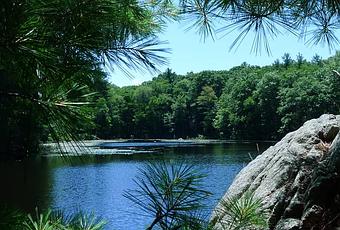 El agua está siempre presente en Rocky Woods, gracias a la situación única de la reserva, en parte en las cuencas de los ríos Neponset y Charles.