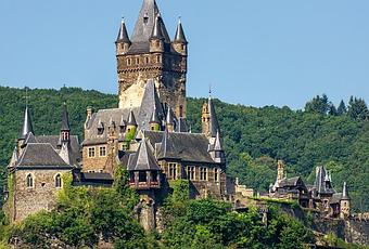 No importa qué ruta tome hacia Cochem, su mirada se verá atraída por esta vista de fantasía y su torre octogonal gigante de cuatro pisos muy por encima del río.