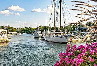 El puente que conecta Dock Square con Upper Village es una parada favorita para tomar fotografías, bordeado de flores en el verano y con vistas al río y los barcos que llenan el pequeño puerto. Tableros históricos con fotos antiguas cuentan la historia de esta antigua capital de la construcción naval y de los barcos y goletas de altos mástiles que se botaron aquí.