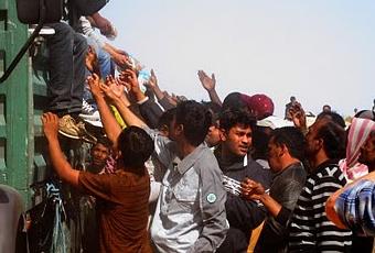 mida pero empieza a escasear el agua. La foto que veis arriba, un camión con voluntarios tunecinos que distribuían de forma caótica botellas de agua, ha provocado un pequeño tumulto ya que el campamento no es un ejemplo de organización aunque todos los humanitarios expertos en estos temas afirman que dentro de lo que cabe todo funciona: se respetan las colas, la gente suele aguardar su turno para recibir alimentos, asistencia sanitaria... También es cierto que no hay mujeres ni niños y eso disminuye el dramatismo de la situación. Hoy hemos empezado nuestras primeras actividades: higiene en el campo, con una cuadrilla de 60 trabajadores y es posible que mañana empecemos a excavar para instalar las primeras letrinas, 250. Si tenemos en cuenta que aterrizamos en Túnez el miércoles de madrugada y hoy ha sido lunes, no está mal en cuanto a rapidez. (incluso hubiéremos ido más rápido si las reuniones de coordinacion con otros actores humanitarios hubiesen sido más agiles) Os iré contando sobre la marcha como va todo.
