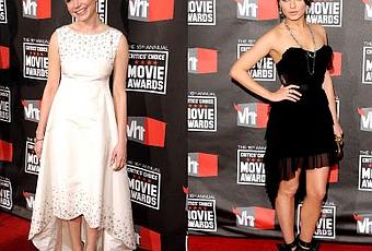 MICHELLE WILLIAMS en blanco, deslumbró a todos con un vestido de corte asimétrico con detalles de joyas en el pecho. MILA KUNIS optó por un vestido corto en negro de Nina Ricci con semi transparencias, y con unos acertados zapatos con lazos (quiza dando un aire a bailarina, quien sabe, pero aun asi, acertadisimos)