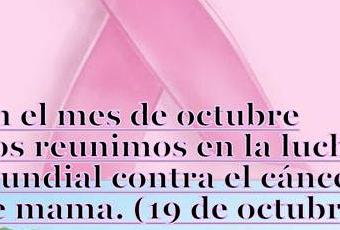 El mes de octubre se considera a nivel mundial el mes de lucha contra el cáncer de mama.http://www.who.int/es/