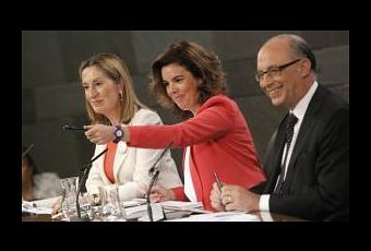 Ayer me dio por ver las portadas de los periódicos y algunos telediarios de diferentes emisoras, por aquello de ver cómo enfocaban el 19-J. Más allá del asco que me dio ABC, que ni siquiera hacía referencia a las movilizaciones en su portada (algo que por otro lado tampoco me sorprende), es increíble lo que se puede llegar a decir. En la edición digital de El País me encontraba con esta foto que da idea de lo preocupados que están los lacayos del capital con el bienestar de los ciudadanos. En el marco de la rueda de prensa posterior al Consejo de Ministros (la mejor forma de no decir nada al no tener que responder a nada), la cerdita Peggy (uy, perdón, Soraya Sáenz de Santamaría), flanqueada por el señor Burns (Cristóbal Montoro) y la madrastra de Blancanieves (Ana Pastor), tenía la caradura de decir algo como que “tenemos la legitimidad de la ciudadanía para hacer las reformas estructurales necesarias…”. Bueno, ya sabéis, la frase no es literal, pero responde al neohabla pepero del “donde dije digo digo Diego”, sin que se pongan ni coloraos. Lo que se le olvidó decir es que cuando las votaciones, dijeron exactamente lo contrario de lo que están haciendo. ¿Es eso la democracia, esa gran palabra que no se les cae de la boca mientras nos machacan? Pues en realidad, no veo gran diferencia con la dictadura. Usted diga lo que quiera que yo haré lo que me dé la gana, aunque antes dijera lo contrario, como dijo Rajoy sin siquera turbarse un poquito. Eso sí, como ya os he contado, se les nota la cara de preocupación por los perjuicios que puedan causar a los ciudadanos. ¿No os lo creéis? pues ahí tenéis la prueba.